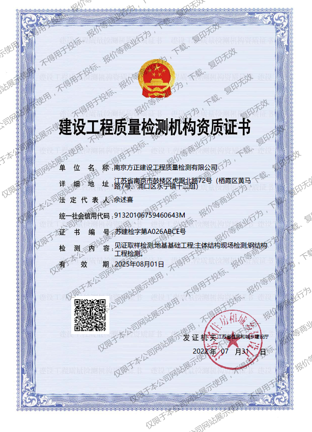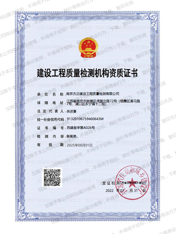 南京方正建設工程質量檢測有限公司是1989年省建設廳批準成立的具有獨立法人資格的專業(yè)工程質量鑒定及檢測機構,具有中國合格評定國家認可委員會實驗室認可CNAS資質、省建設廳核準的見證取樣類檢測、專項類檢測及備案類檢測資質,省質量技術監(jiān)督局資質認定CMA資質,省地理測繪信息局測繪資質,被省建設廳評為2010年度、2011年度、2012年度A級信用等級單位,是入選《全省中小學校舍安全工程抗震鑒定機構名錄》的鑒定機構, 是入選江蘇省人民法院委托鑒定機構電子信息平臺的鑒定機構...